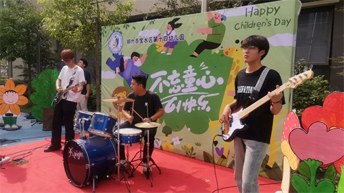 苏打汽水乐队热情洋溢的开场曲《你要跳舞吗》点燃现场氛围。随后,流行音乐社团成员们轮番上阵,带来了丰富多样的节目。活力四射的乐队表演《奇迹再现》激昂的鼓点与炫酷的吉他旋律完美融合,引得孩子们跟着节奏挥舞双手;俏皮可爱的《勇气大爆发》更是让现场变成了欢乐的海洋,孩子们清脆的笑声和歌声交织在一起。