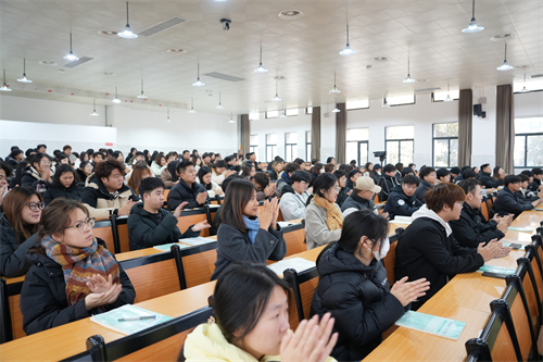 12月25日上午,我校校长郭丽萍以“以党的二十届三中全会为指引,奋进全面深化改革新征程”为题,走进报告厅为现代服务与管理学院和财经商贸学院2024级相关班级讲授思政课。郭校长深入解读党的二十届三中全会精神,激励广大青年学生积极投身改革浪潮,以实际行动践行改革精神,为以中国式现代化全面推进中华民族伟大复兴贡献青春力量。在讲授中,她巧妙运用红歌串联起国家发展中的重大事件,为现场师生呈现了一场别开生面的思政盛宴。