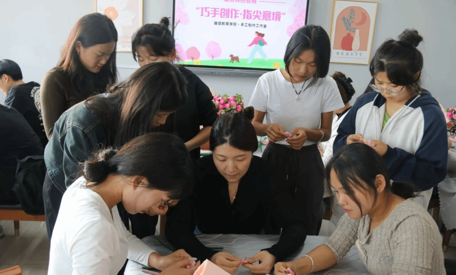 为发挥女大学生性别优势,展现传统女校心灵手巧的独特魅力,增强大学女生的动手能力和创新能力,10月10日下午,继续教育学院联合体育学院,在实训楼508举办了女校特色教育“巧手创作·指尖意境”手工制作活动。