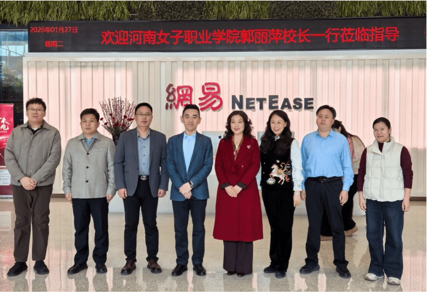 仪式前,郭丽萍一行参观了网易公司展厅,深入了解网易从“优秀内容创造者”到“数字科技领跑者”的发展历程,以及在数字媒体、游戏研发、人工智能等领域的产业布局与创新实践,为后续合作奠定了扎实基础。