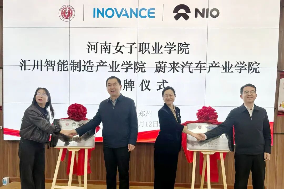 为深入贯彻产教融合、协同育人理念,精准对接智能制造与新能源汽车产业发展需求,助力区域产业转型升级,3月12日上午,河南女子职业学院汇川智能制造及蔚来汽车产业学院揭牌仪式在东校区隆重举行。副校长周旷怡、校长助理王俊国出席,苏州汇川技术有限公司、上海蔚来汽车有限公司相关嘉宾及学校师生代表共同见证,携手开启校企协同育人新篇章。