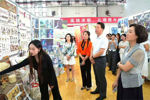 展览期间,美术与设计引入多家行业领军企业、设计机构参与作品遴选与指导,推动毕业设计与企业意向实现项目孵化落地。同时,设置“文艺市集”,将学生的原创设计作品(如手工簪花、掐丝点翠、综合材料、文创产品、手作艺术品等)直接推向真实消费场景,也让学生在实践中理解市场、感知用户需求,为未来创业或职业发展积累宝贵经验。