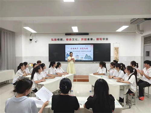 为深入贯彻落实习近平总书记关于弘扬中华优秀传统文化的重要指示精神,积极响应教育部“传承中华经典,弘扬时代精神”的号召,6月10日,我校第二届诗词大会决赛在北校区茶艺实训室开启。
