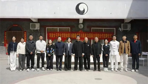 4月3日,体育与健康学院与陈家沟国际太极院在陈家沟国际太极院举行教师实践基地及学生实训基地合作挂牌仪式。陈家沟国际太极院院长陈炳、我校体育与健康学院院长廉咏宁、陈家沟陈氏家族理事会主任陈一华、潮武功夫创始人、极武商学院总经理曹皓铭,陈家沟三德太极协会会长陈伟等领导嘉宾出席挂牌仪式。