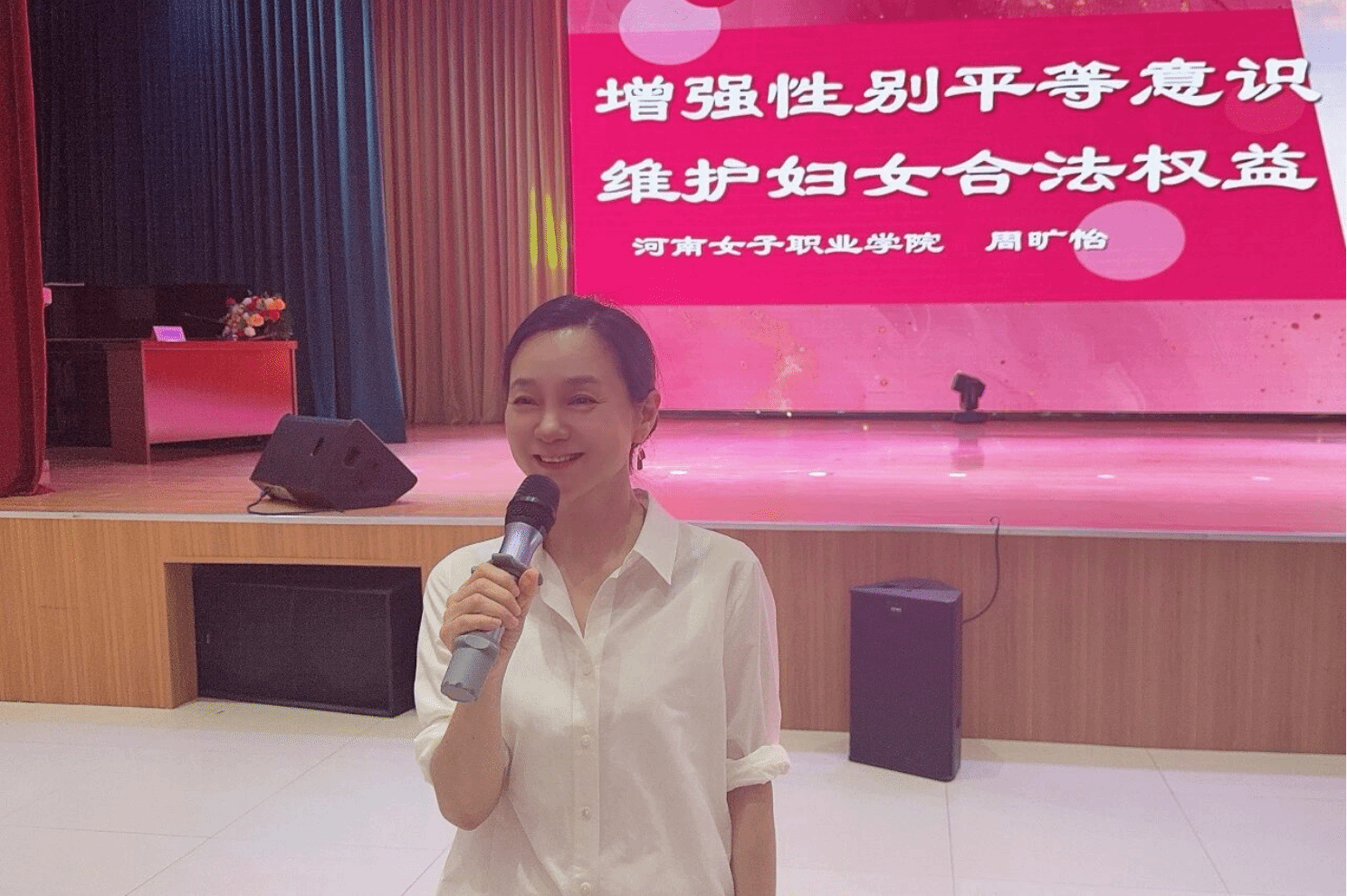 活动中,副校长周旷怡以《增强性别平等意识 维护妇女合法权益》为题展开宣讲。她精心选取了与基层妇女生活息息相关的典型案例,用通俗易懂的语言拆解男女平等基本国策的实践路径。周旷怡的讲解既有理论高度,又紧密结合济源基层实际,她将妇联履职重点清晰梳理为“政策宣讲、 需求调研、矛盾调解、能力提升”等模块,让在场妇联干部和妇女群众对如何践行男女平等国策、增强性别平等意识有了更清晰的行动指南。