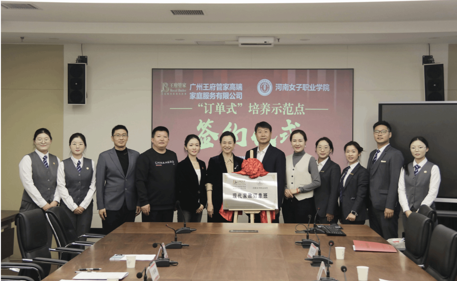 为深入贯彻职业教育产教融合、校企协同育人理念,精准对接高端家政服务行业人才需求,3月12日,河南女子职业学院与广州王府管家高端家庭服务有限公司举行“现代家政订单班”签约仪式。副校长周旷怡出席仪式,现代服务与管理学院、社会合作处相关负责人与企业代表共同参与,见证双方校企合作开启新篇章。此行,王府管家董事长马俊恒带领广州王府管家团队开展了专题宣讲,向现场学生详细介绍了企业发展愿景、订单班培养模式、岗位发展前景及薪资待遇等内容,...